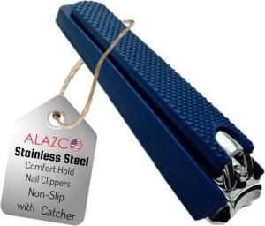 1 Comfort Hold Navy Large Nail Clippers Non-Slip Sure Grip Clipping Removable Catcher Toenails Fingernails Cutter Ultra Sharp Trimmer Stainless Steel Men Women Arthritis Unsteady Hands