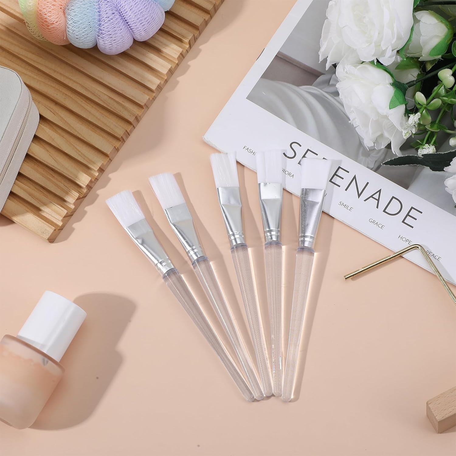 This 16-Pack facial mask brush is a set of practical and clean skin care and makeup tools. Each brush features a transparent Plastic Handle for comfortable grip and a soft nylon Fan Brushes head. This brush head design allows for easy and even application of various consistencies, from thick Facials masks to liquid Foundation, and from nourishing Body Lotion to rich Body Butter. As a versatile mask applicator tool, it offers a more clean and smoother application alternative compared to using fingers, helping to keep clean and securing the product is spread evenly. The fine bristles are designed to be gentle on the skin, avoiding discomfort. Whether used for daily Skin Care routines or for creative purposes as face paint brushes, this economical multi-pack set meets the need for frequent rotation or dedicated use for different products.