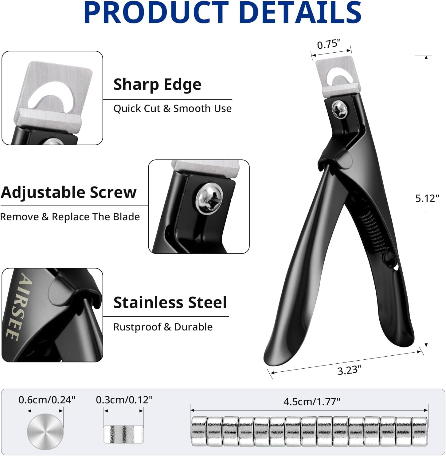 Precision Manufacturing: AIRSEE nail clipper features sharp blade edges for smooth and efficient trimming. The adjustable screws allow for easy customization of blade tightness. Crafted from durable stainless steel, this premium acrylic nail clipper is resistant to rust and far more robust than plastic alternatives, ensuring long-lasting use!