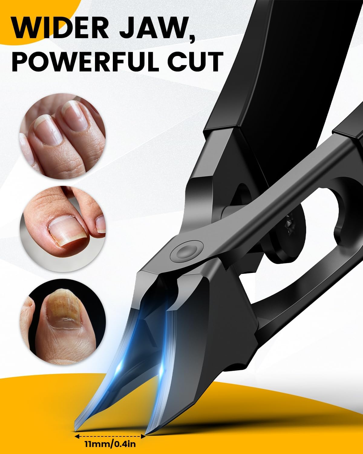 WIDER JAW, POWERFUL CUT: Stop struggling with tiny, frustrating fingernail clippers. The extra-wide jaw opening (up to 11mm!) and razor-sharp curved blades easily handle the thickest, most fungal, or ingrown toenails like a hot knife through butter.