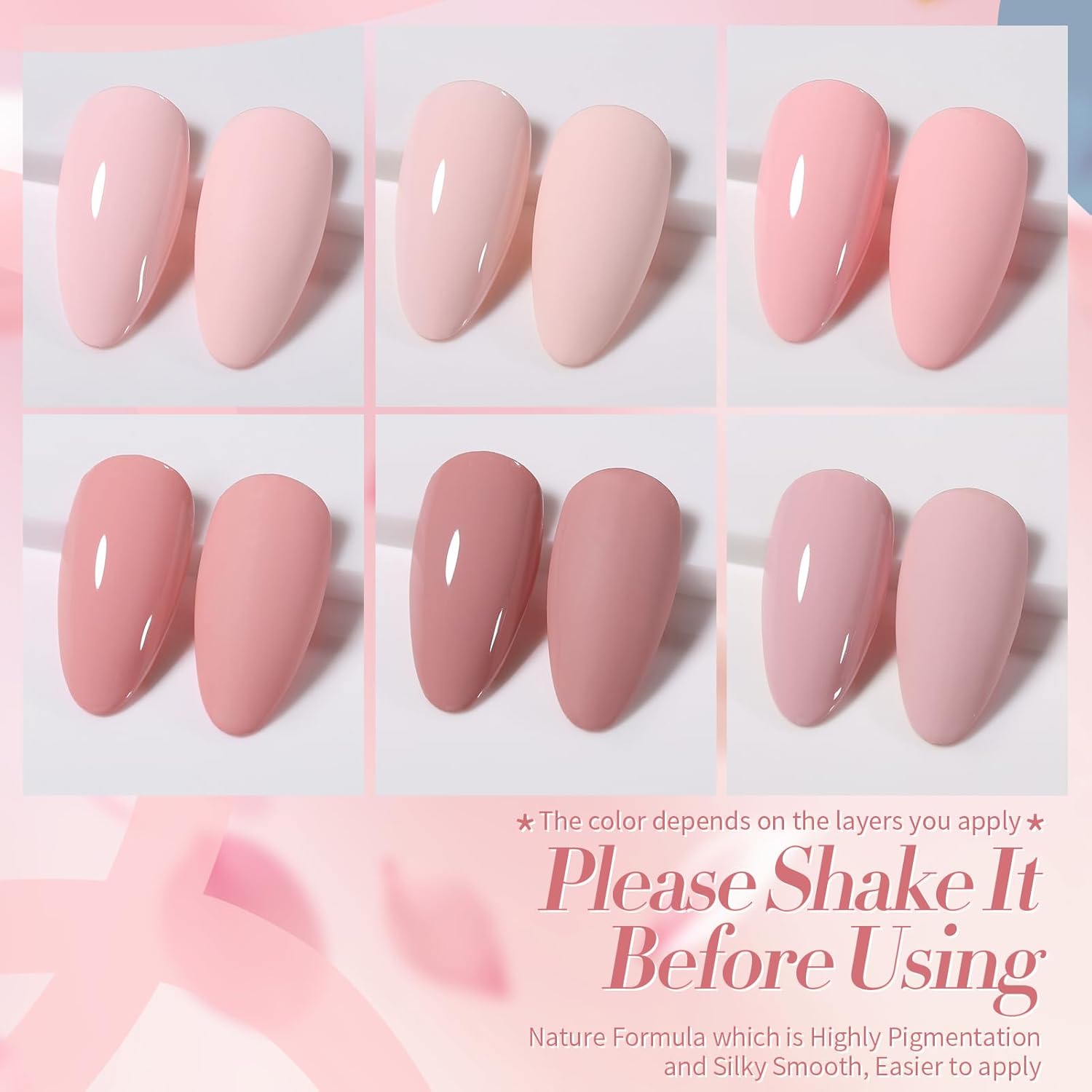 6 Colors Pink Gel Polish Set- Is definitely a boon for nail art lovers! It includes six different shades of pink, from gentle nude pink to sweet pink, each of which can accurately snipe your heart. Whether you like a fresh, natural look or a sweet, cute look, you’ll find your favorite color in this set.