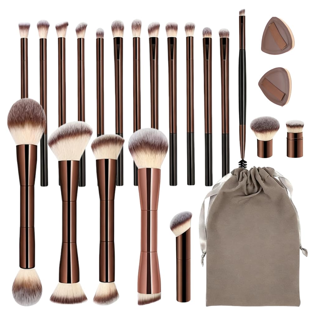 The Dodorado Professional Makeup Brush Set is designed to transform makeup application from a daily routine into an act of artistic expression and self-care. We believe the right tools not only enhance your look but also boost your confidence and joy during the process. Its core value lies in comprehensiveness and quality: 20 meticulously designed brushes eliminate the need to compromise. From creating a flawless foundation base and precise concealing, to blending natural blush and sculpting defined contour, down to detailing the perfect eye makeup, each brush has a dedicated purpose. The soft, skin-friendly synthetic bristles ensure a comfortable application, while the coffee brown wooden handles offer not just a non-slip grip but also an elegant accent to your vanity.