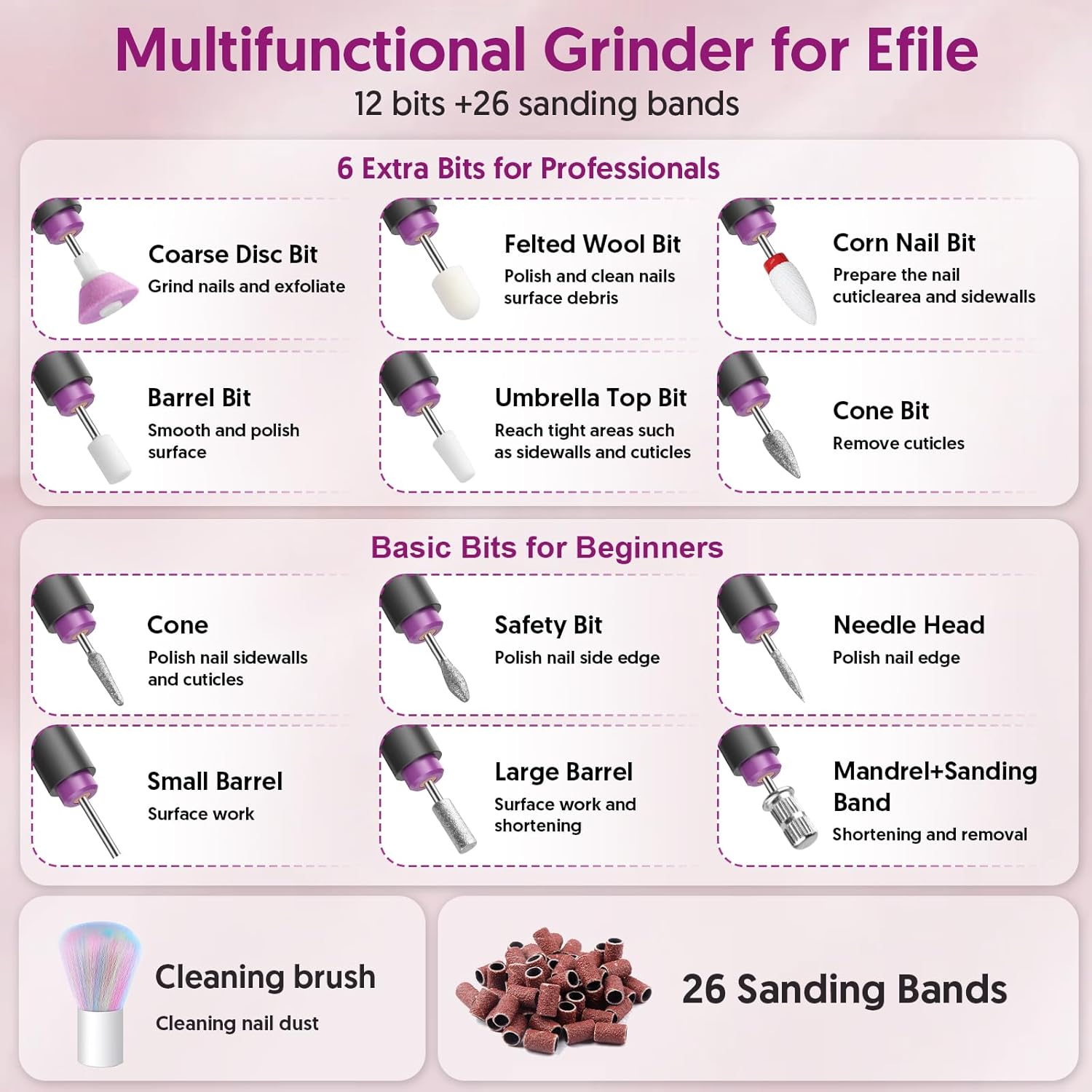 【Professional Electric Nail Drill】Experience efficient and automated nail care with HALMAI Nail Drill Machine. Our acrylic nail drill comes with 12 different kinds drill bits,1 dust cover, and 26 sanding bands for file and buff nails. Professional ceramic drill bit sharp enough to finish various nail artwork, such as sharpening, grinding, carving, smoothing, polishing or acrylic nails and poly gel nails natural nails, etc.