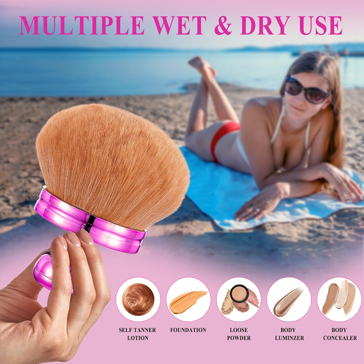 【All-Scene Versatile Brush】- Works with liquid/powder/cream: self-tanner, foundation, blush, and shimmery cosmetics. Perfect for face & body, daily use or dates.