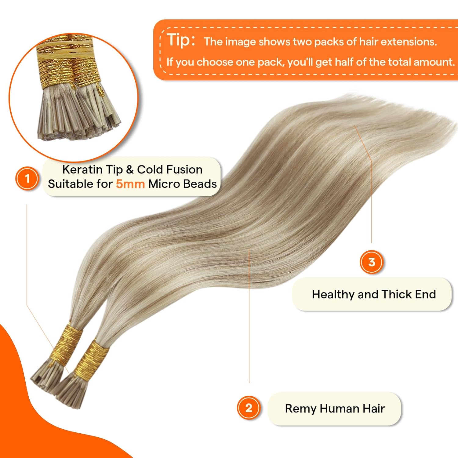 Real Human Hair: Full Shine i tip hair extensions are made of real human hair, can be heat styled and dyed in darker colors, allowing you to customize your look to match your personal style