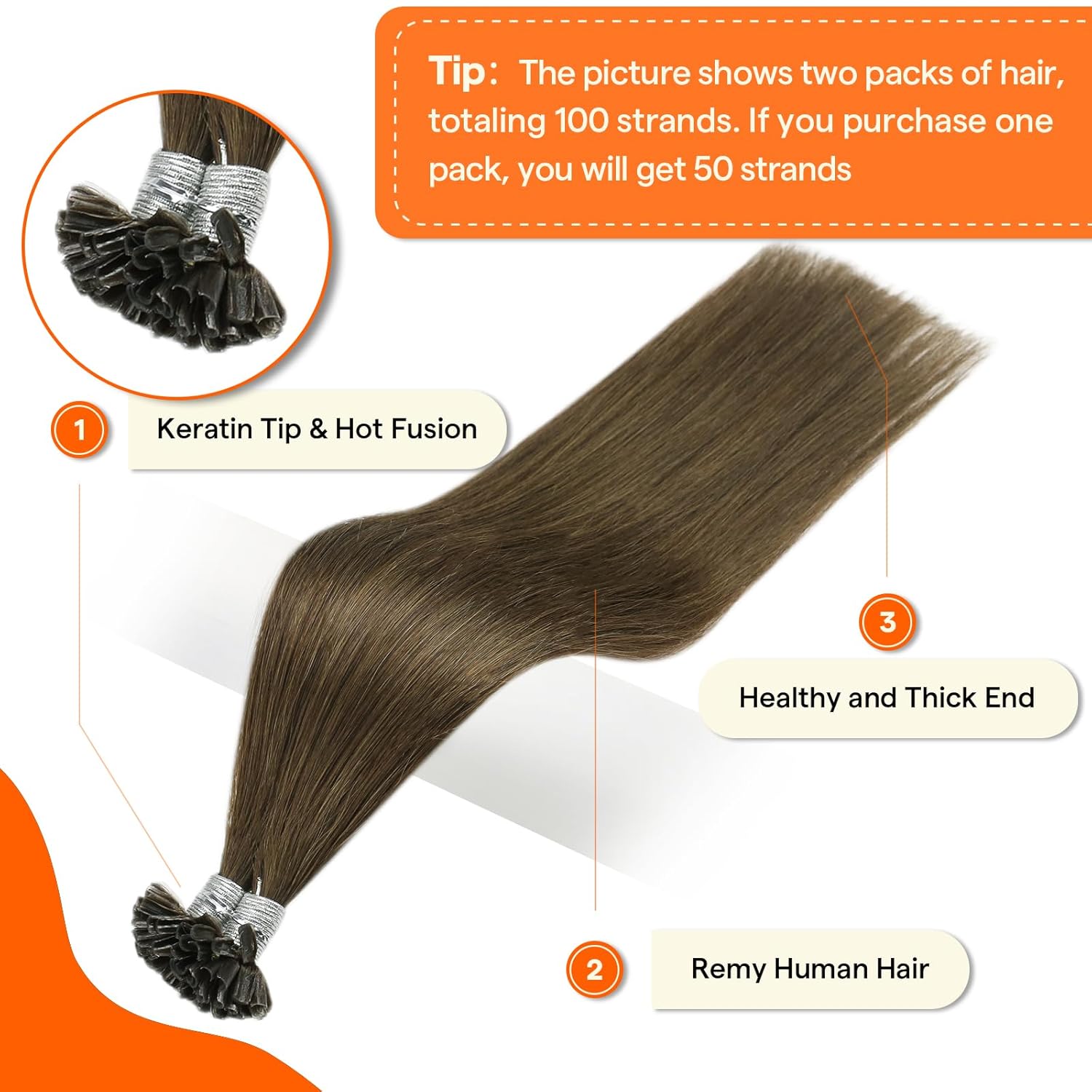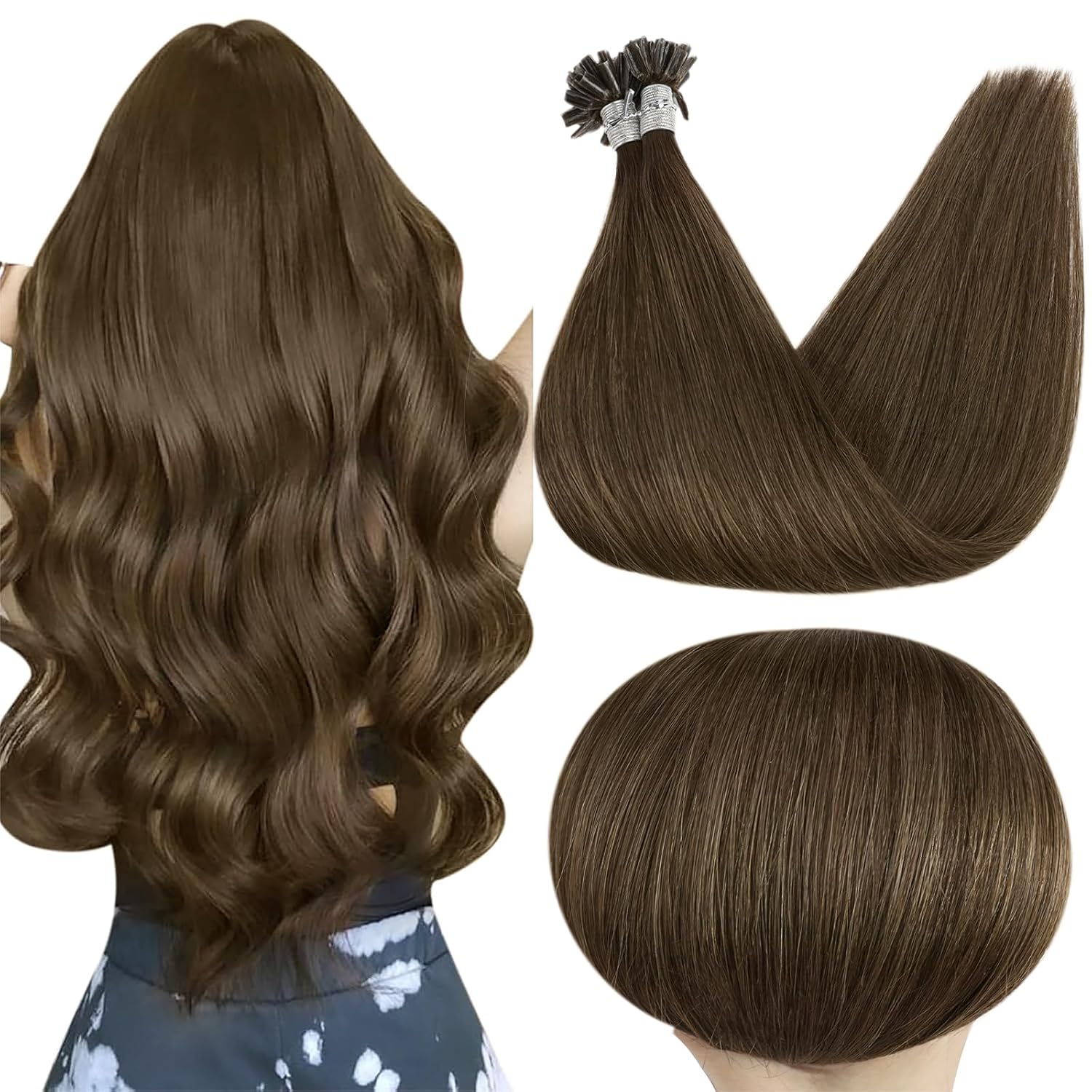 Full Shine U Tip Hair Extensions Human Hair 18 Inch Ktip Human Hair Extensions Color 4 Medium Brown Prebonded Nail Tip Extensions Remy Hair 50 Grams