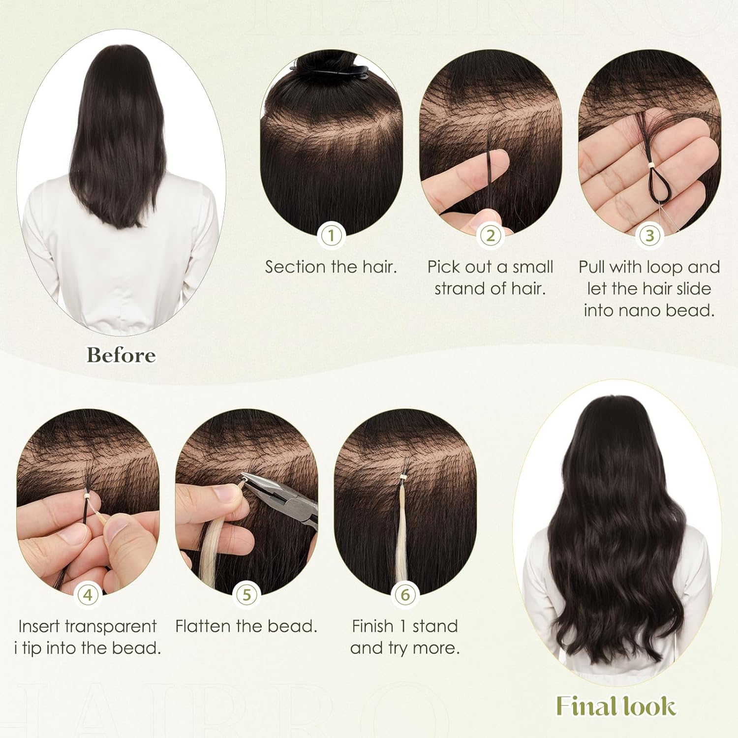 ★Secure & Durable: Hairro I-tip extensions utilize a pre-bonded cold fusion technique to minimize hair shedding, making them perfect for everyday wear. Installed with micro beads for a comfortable fit and easy replacement, they offer a long-lasting service life