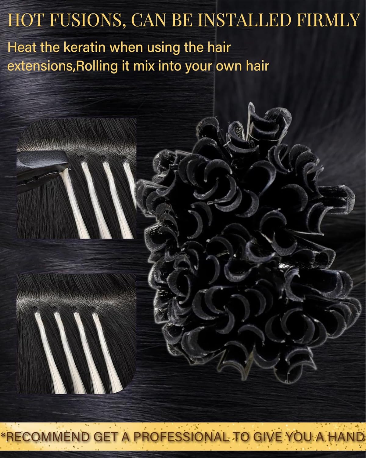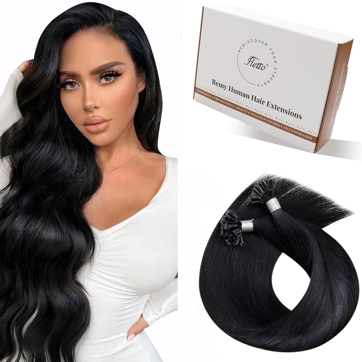 Hetto K Tip Hair Extensions Real Human Hair Black Utip Hair Extensions Jet Black Ktip Human Hair Extension Fusion Invisible 22 Inch 50g 50s