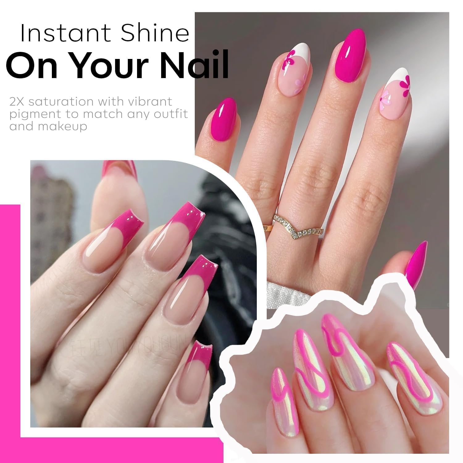 Healthy & 28 Days No Peel-off: Modelones hot pink nail polish set is made of natural resin, it is non-toxic and has a low odor. No harsh ingredients or adhesives lead to damaged nails. High durability and Intense pigmentation gel polish kit can stay last longer and brings you a brilliant shiny finish. Spend 3 minutes and long-lasting for 28+ days.