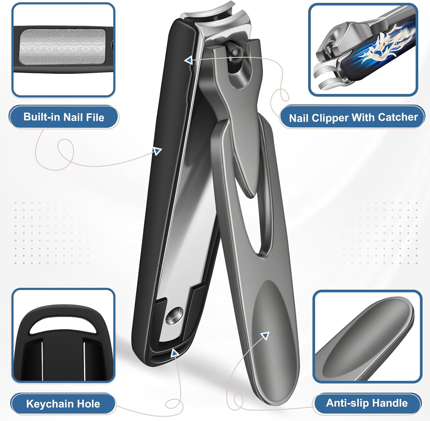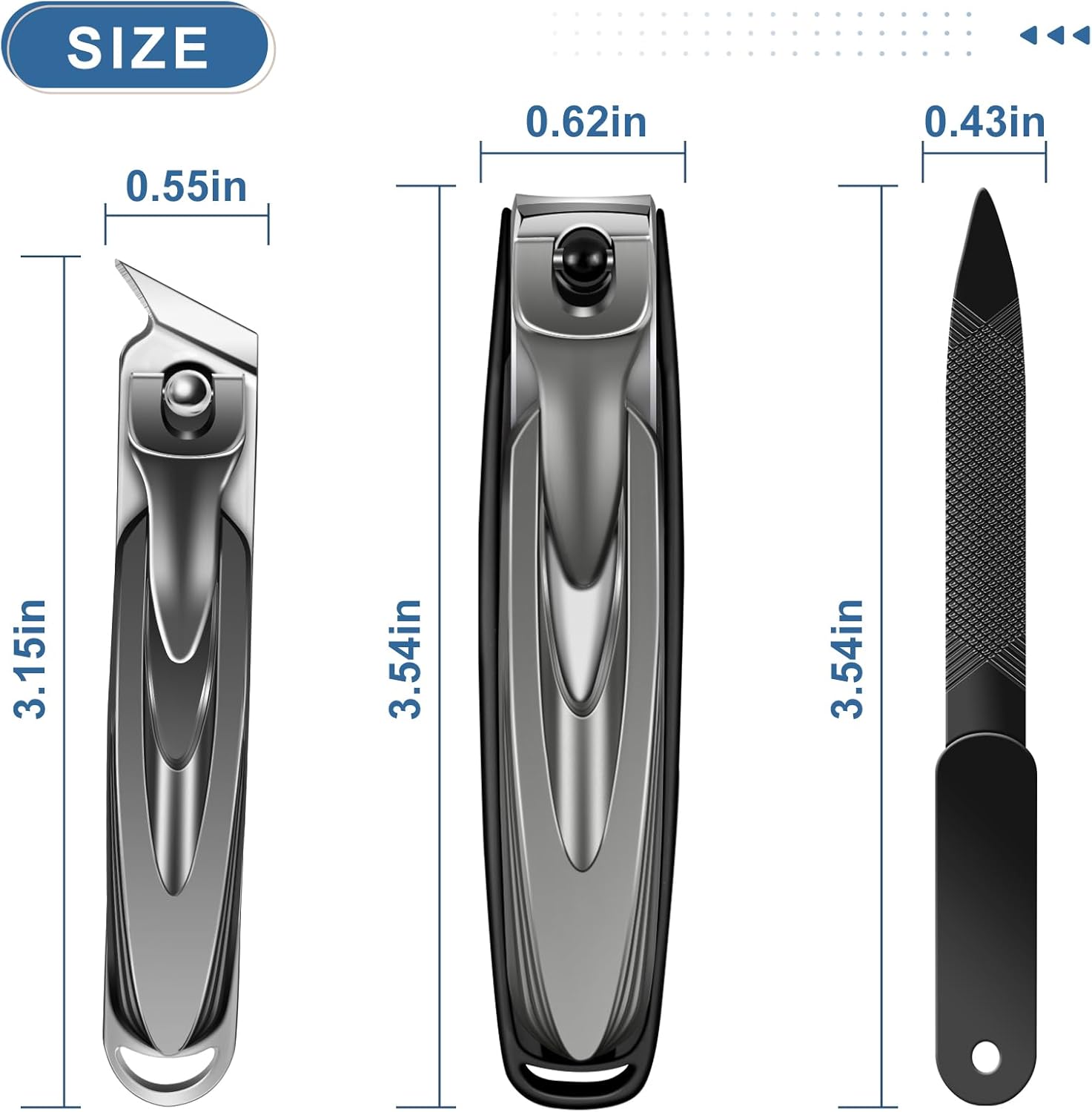 Great Value Set: The nail clippers set includes 1 x Upgraded Slanted Nail Clippers, 1 x Heavy Duty Nail Clippers with Catcher,1 x Stainless steel nail file,packed in a beautiful box. Nail clippers for men are perfect for trimming thick nails, ingrown nails, big toenails, side nails and cuticles, suitable for seniors, men and women