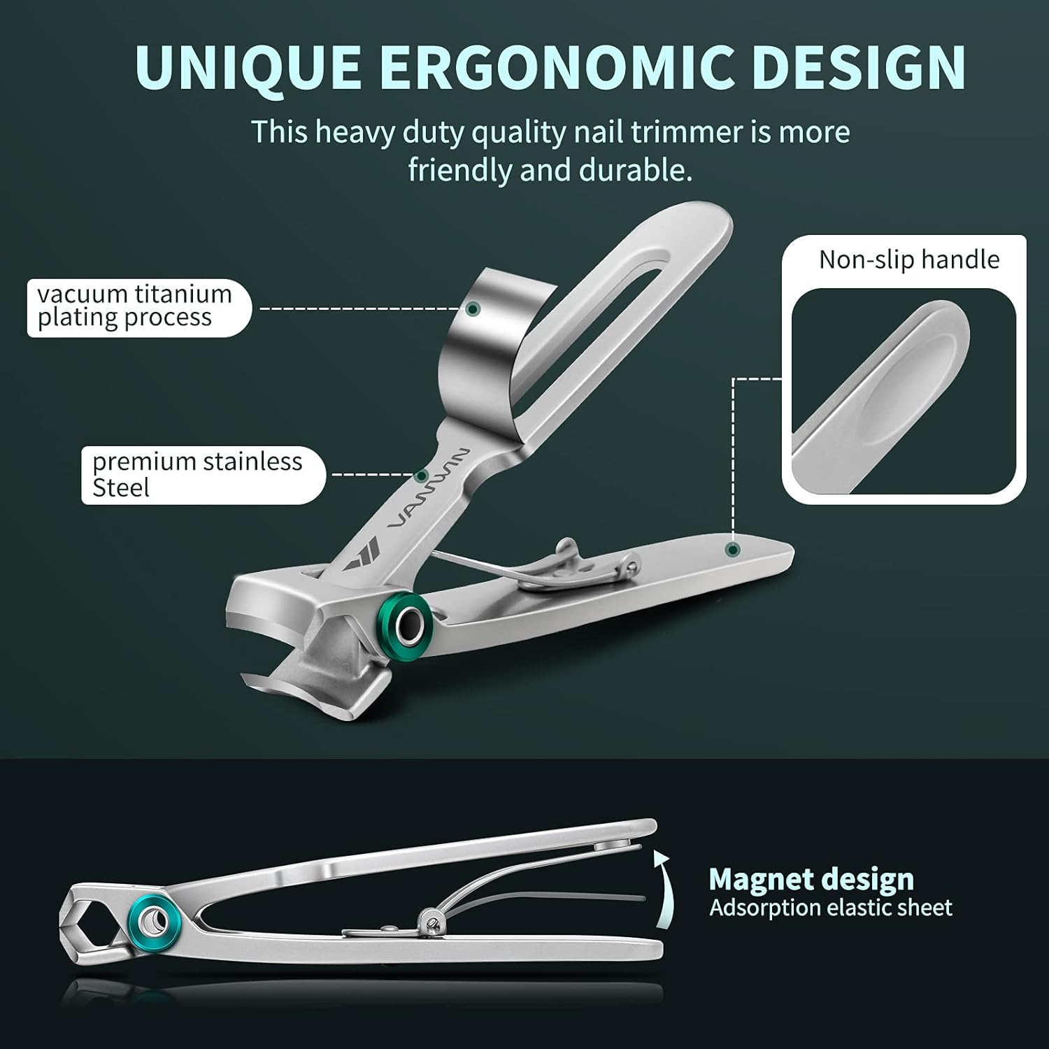 WIDE JAW OPENING: VANWIN toenail nipper with sharp curved wide jaw blades open up to 16mm, is perfect for your thick or ingrown toe nails due to tough?paronychia?aging and other health concerns, the lever technology used in nail clipper to cut thickest and hardest nails in minimum force.