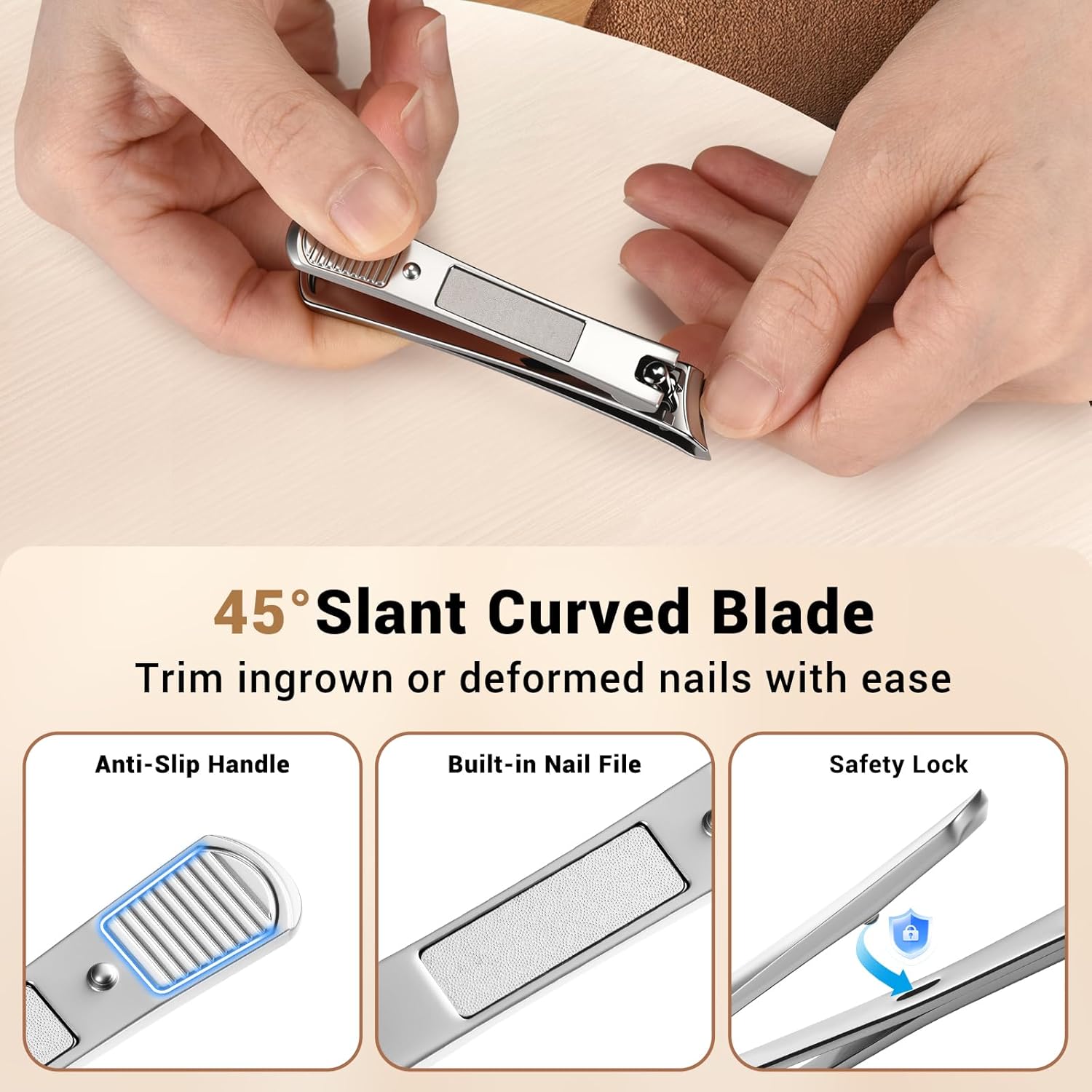 ✂ 25° Curved Blade for Ingrown Nails: Features a hand-polished, medical-grade stainless steel blade that follows your nail’s natural curve. The ergonomic non-slip handle ensures safe and accurate trimming of ingrown edges and deep grooves.