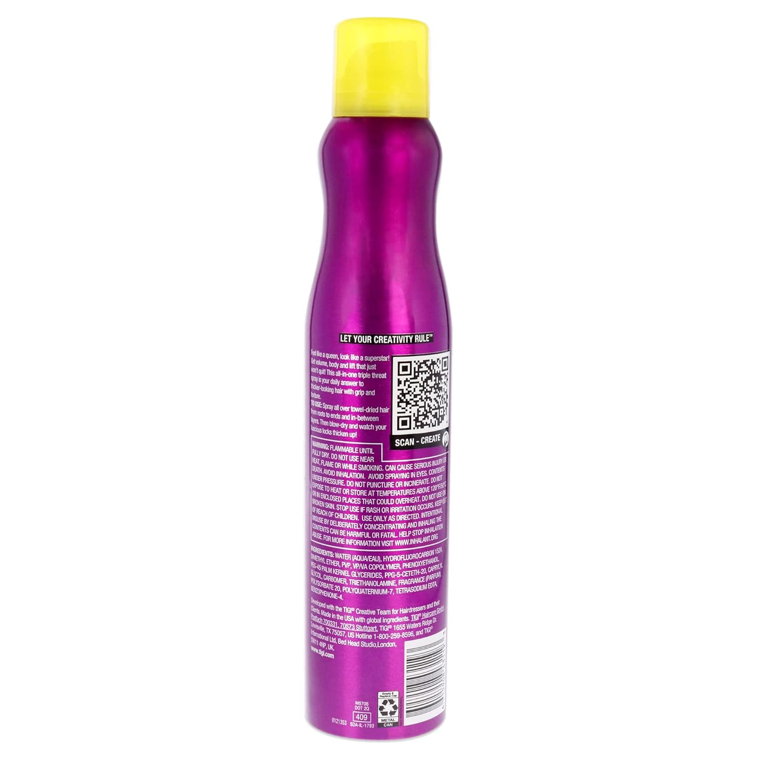 Bed Head’s Queen For A Day Thickening Spray. New on the outside and just as epic on the inside. A powerful volumizing formulation, not only designed with, but used by salon professionals. Delivering salon results and salon experience at home. Get long-lasting volume and thickness with Bed Head Superstar Queen For A Day Thickening Spray! This hair thickening and texturizing spray provides hair with added texture, a light hold and incredible body and lift. The hair styling spray leaves hair smooth, soft and voluminous. For thicker looking hair! Great for adding volume to thin hair, fine hair and flat hair! Spray the thickening spray through towel-dried hair from roots to ends and in between layers. Then blow-dry and watch your luscious locks thicken up. Formulated with Palm Kernal Glycerides to create volume and texture, leaving hair feeling thicker, fuller and volumious, Triglycerides that condition, smooth and soften hair, and Film Forming Polymers that provide long lasting hold so hairstyles and volume don’t drop. This hair product is 10.5 oz and comes with a Fresh Berry fragrance.