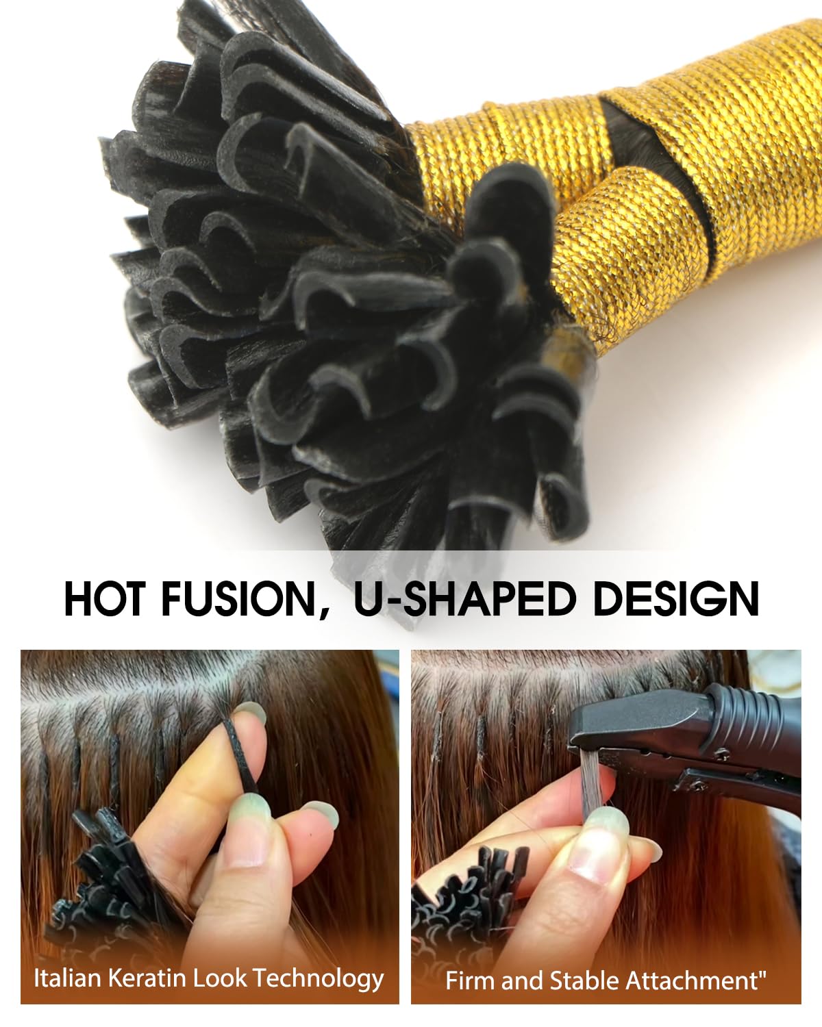 U Tip Hair Extensions Human Hair: Pre bonded hair extensions made from high-quality natural human hair, can be styled like your natural hair. You can curl, straighten or dye them to match your desired look