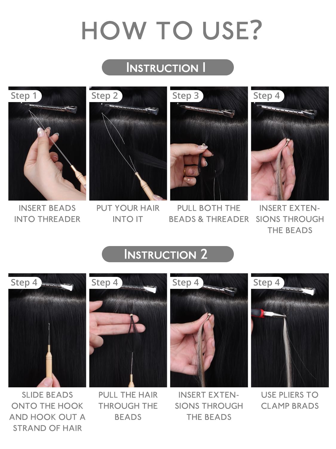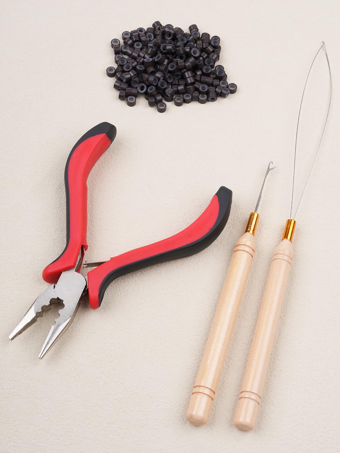 Precision Tools for Flawless Application: The 3-hole plier ensures a secure grip, and hook needle allows for accurate weft lifting without scalp damage. The beads feature a soft silicone interior provides a strong, non-slip hold for hair extensions