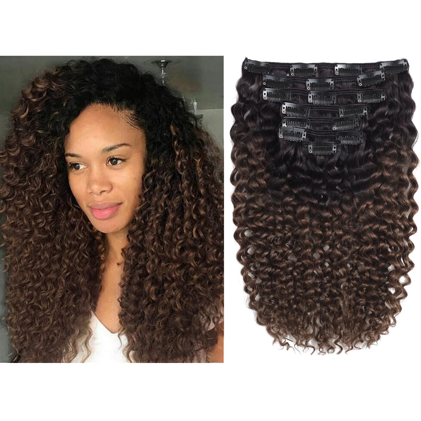 Lacer Jerry Curly Hair Extension Clip in Human Hair Extensions 3B 3C Ombre Natural Black Hair Extensions Colored Two Tone Dark Brown For Black Women 7Pcs/120G (16 inch, Jerry Curly #1B/4)